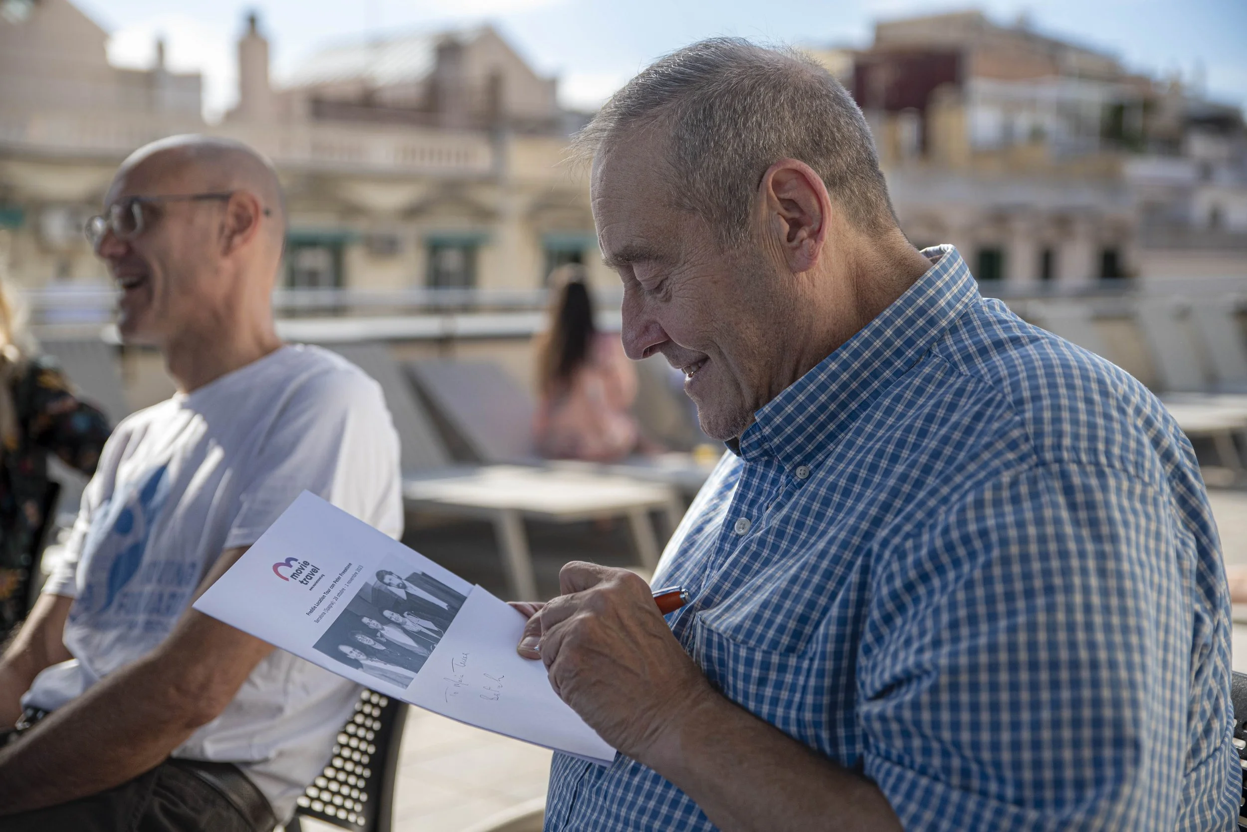 Nel secondo giorno di tour, il clima meraviglioso e caldo di Barcellona ci permette di organizzare l’incontro con Peter in una location speciale: la terrazza con piscina del nostro hotel!