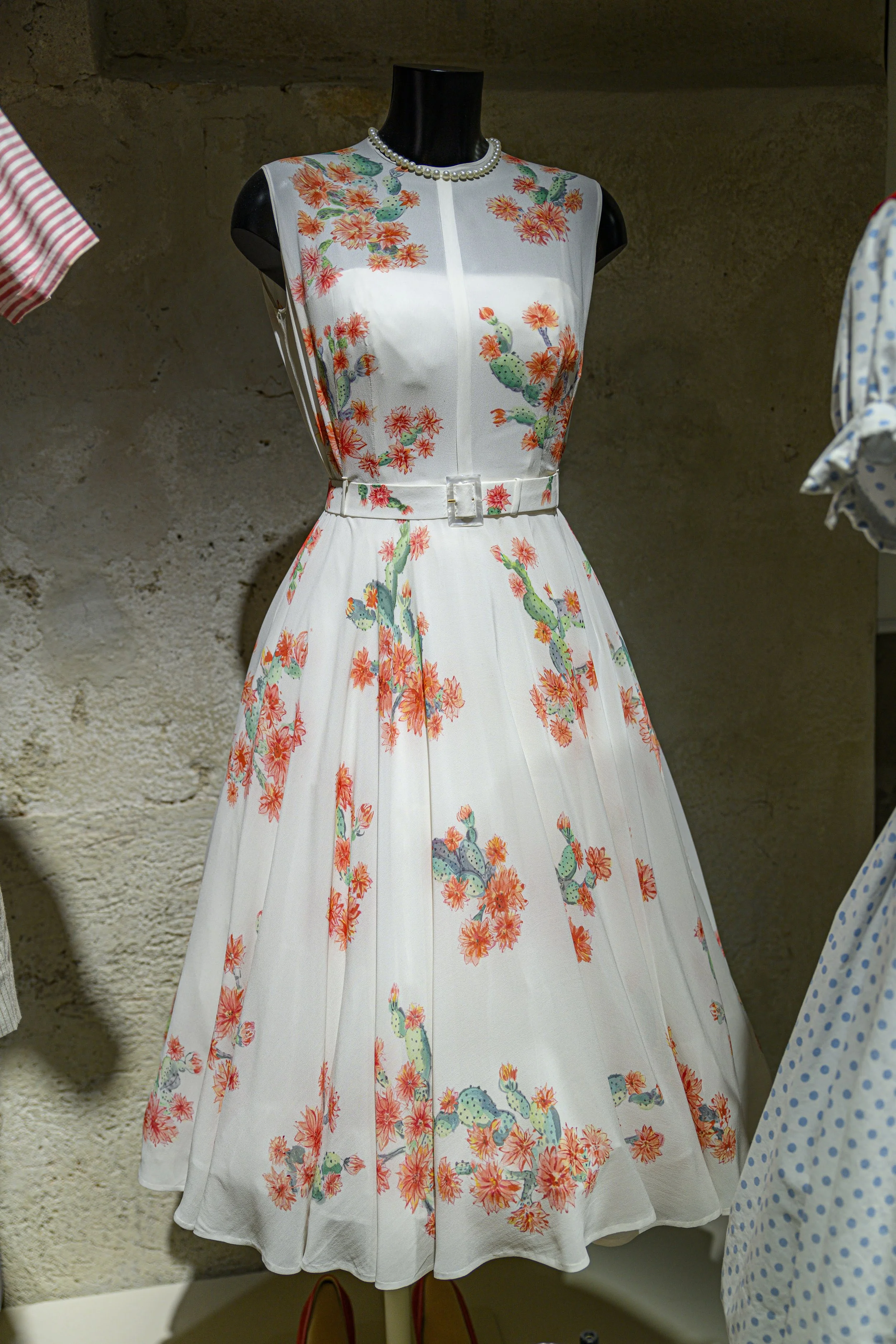 Lo spazio espositivo accoglie anche molti dei costumi creati dalla quattro volte premio Oscar Milena Canonero, offrendoci l’occasione unica di vederli da vicinissimo e di ammirarne i dettagli. Abiti dai colori pastello che vanno dal celeste, all’arancio, al giallino tra cui quelli della protagonista Scarlett Johansson, il cui personaggio è ispirato a star degli anni ’50 come Marilyn Monroe e Kim Stanley e quelli del protagonista maschile, Jason Schwartzman, reporter di guerra in lutto, che con la sua sahariana e la sua macchina fotografica, sembra ispirato al primo Stanley Kubrick.